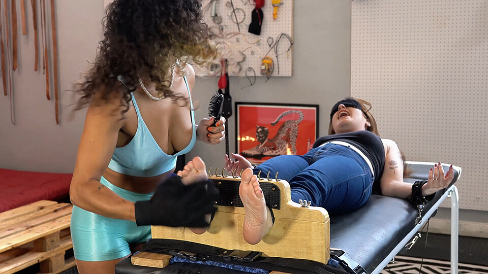 Mibby got really excited when we called to film, and when we got there, she said she really wanted to tickle me too; so, I was tied up with my feet fastened to the stock so she could have her revenge. Mibby asked me to keep my eyes blindfolded so I could just feel what she was going to do, since it was her first time tickling a tied-up girl.